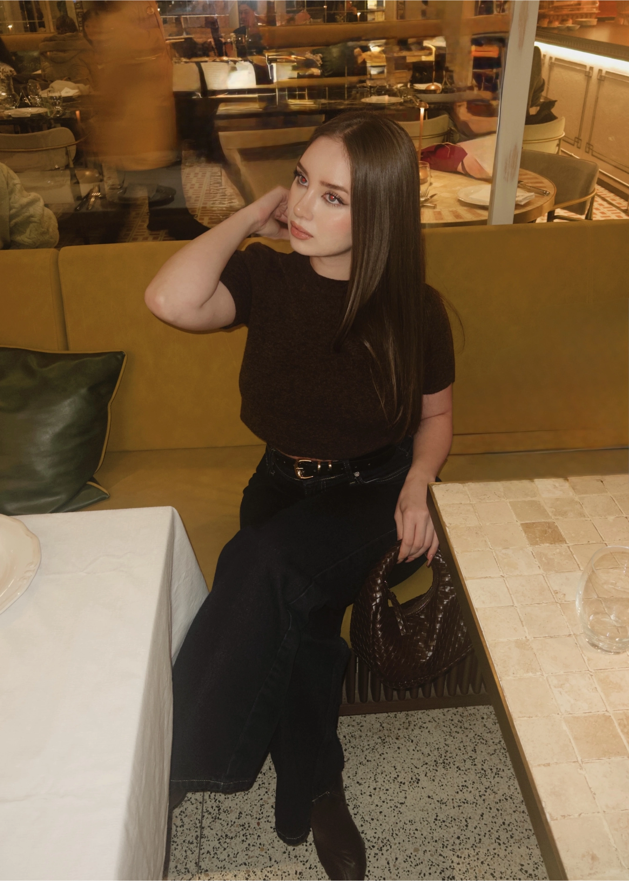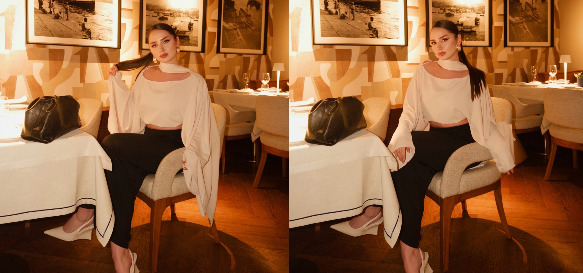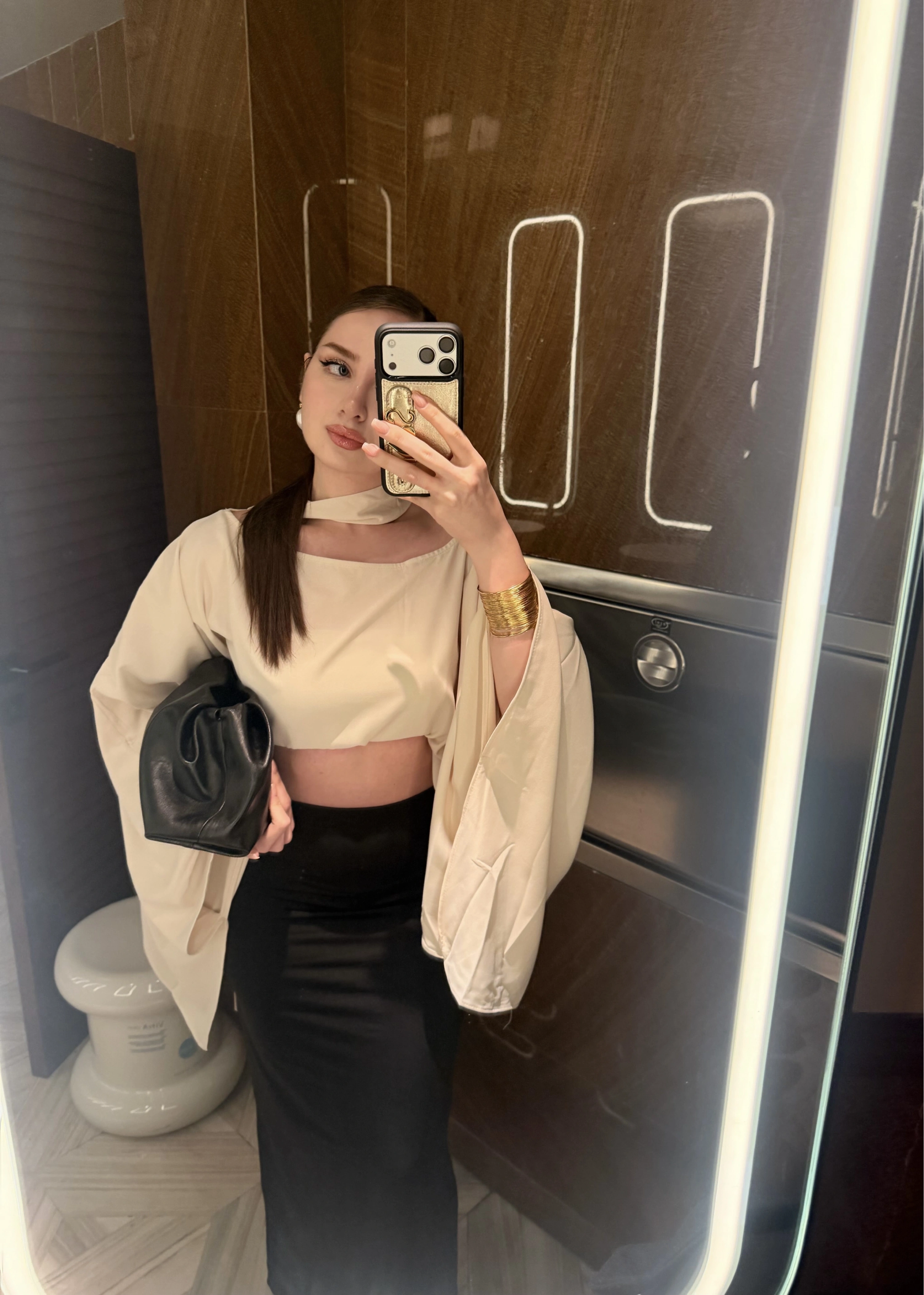 Uzun Kollu Siyah Kayık Yaka Crop
