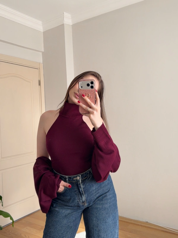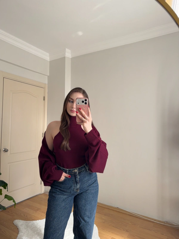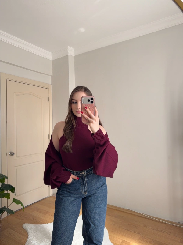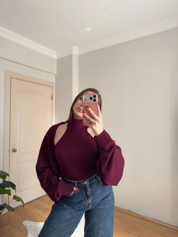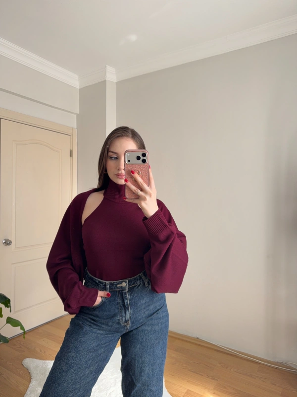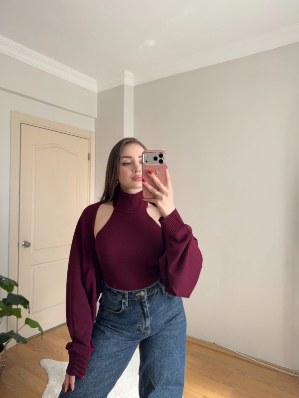 Bolero Detaylı İkili Bordo Triko Bluz