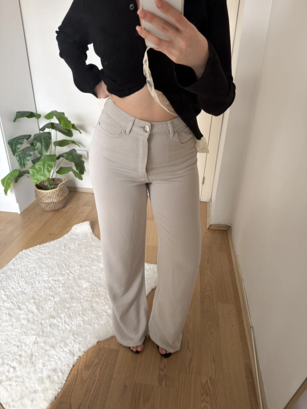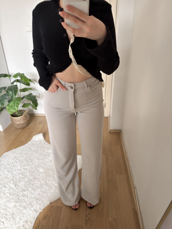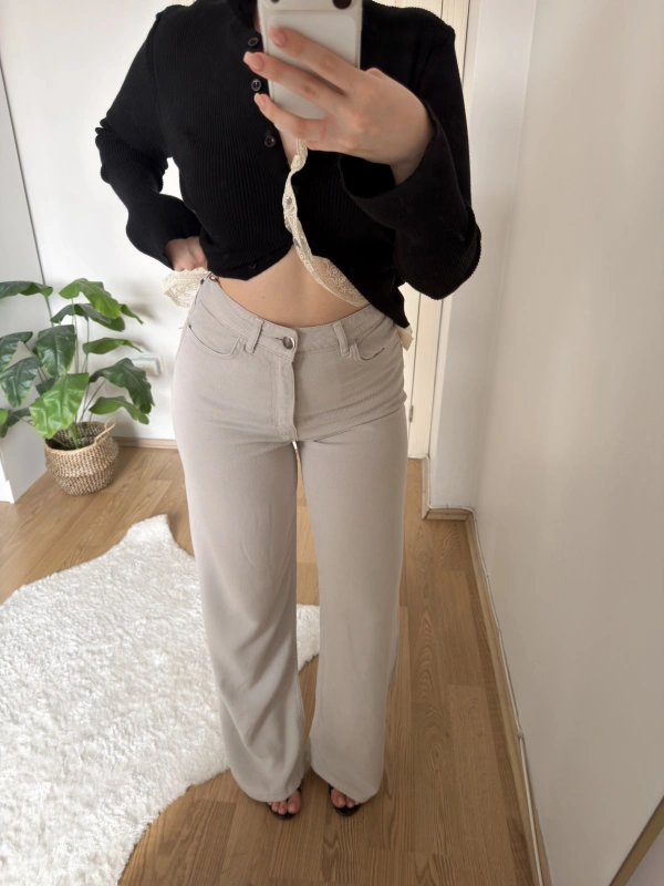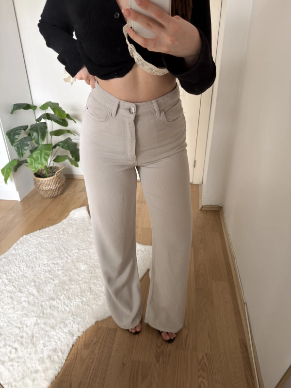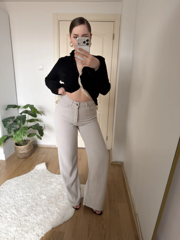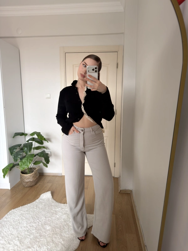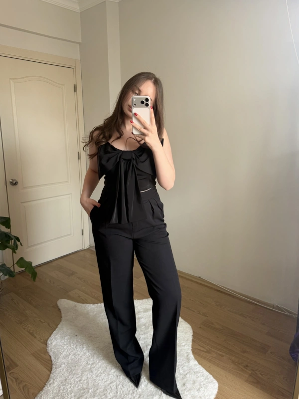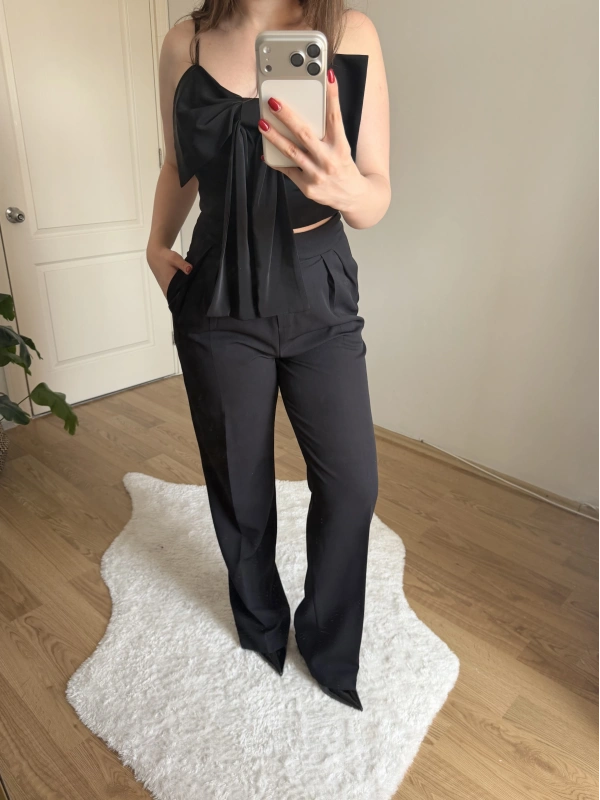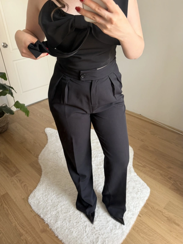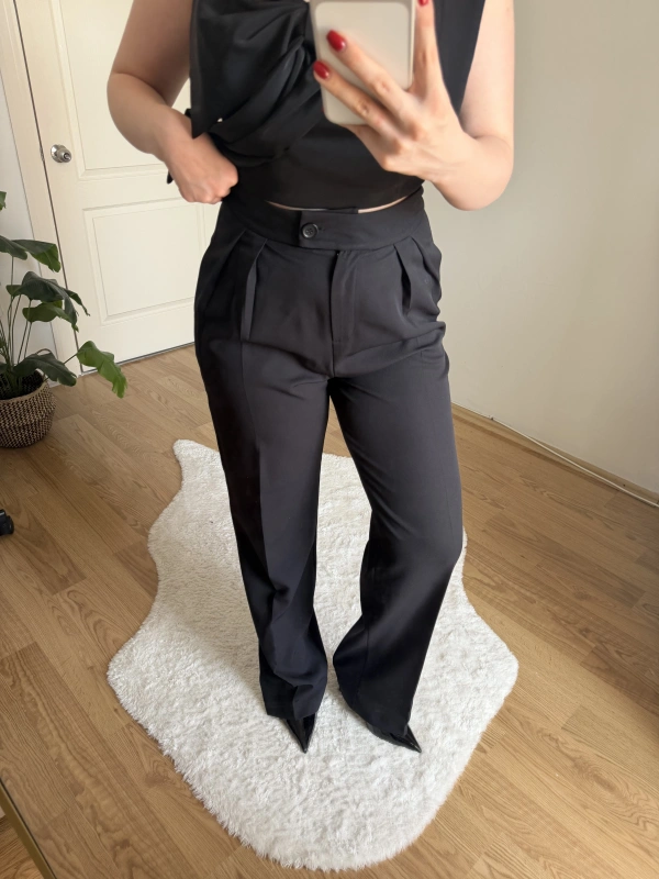 Boru Paça Siyah Kumaş Pantolon