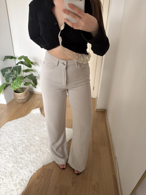 Düz Paça Tensel Gri Pantolon