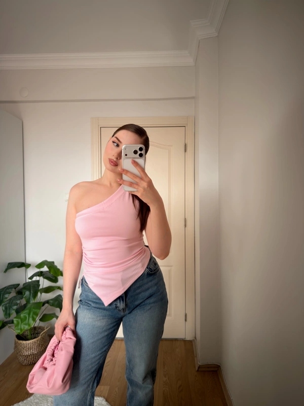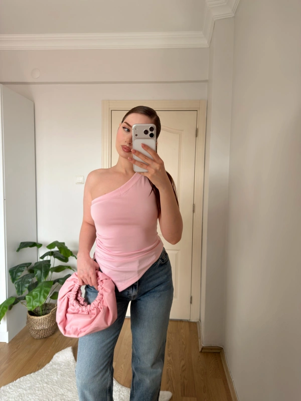 Pembe Tek Kol Örme Bluz