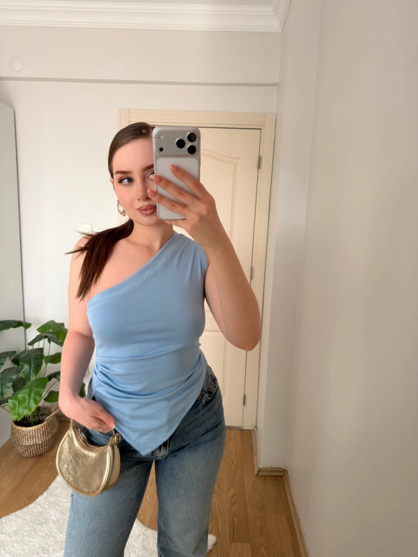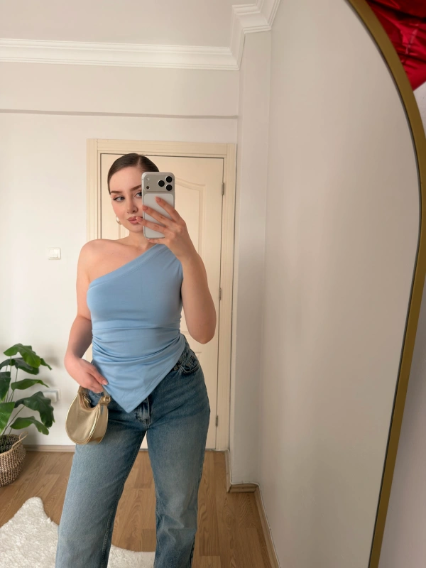 Mavi Tek Kol Örme Bluz