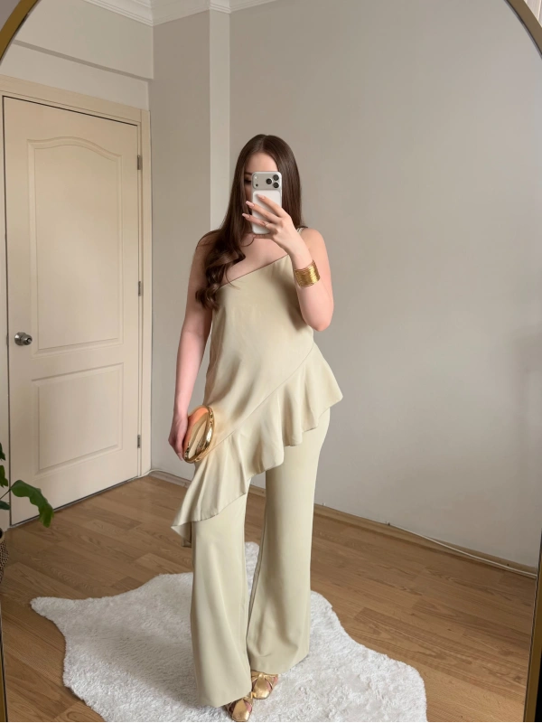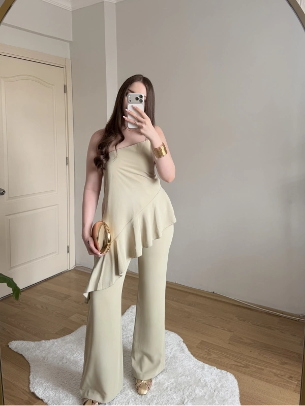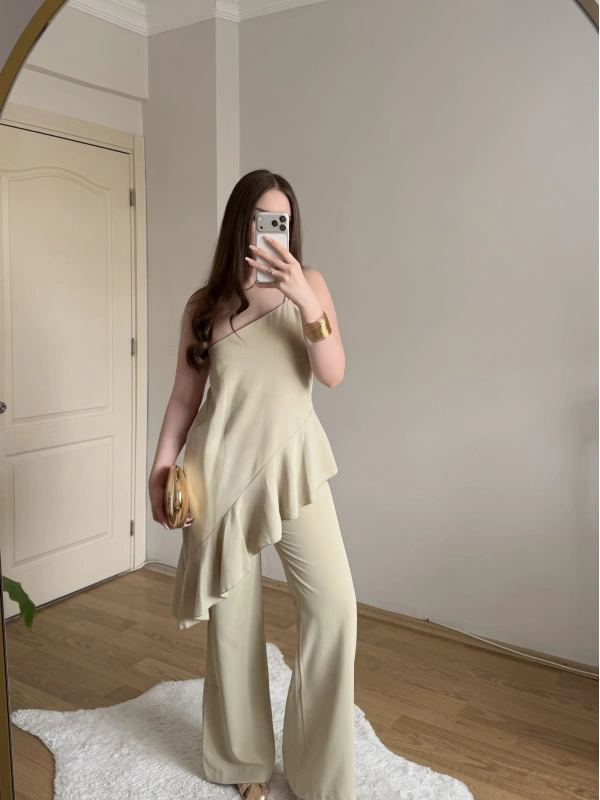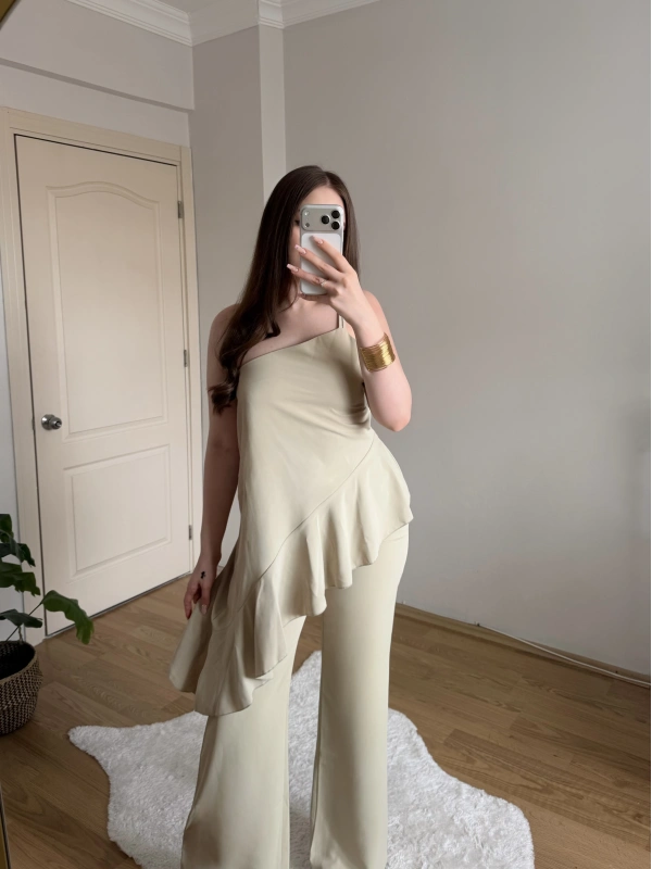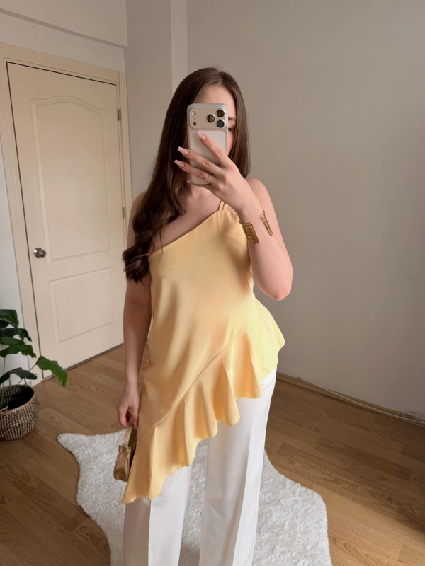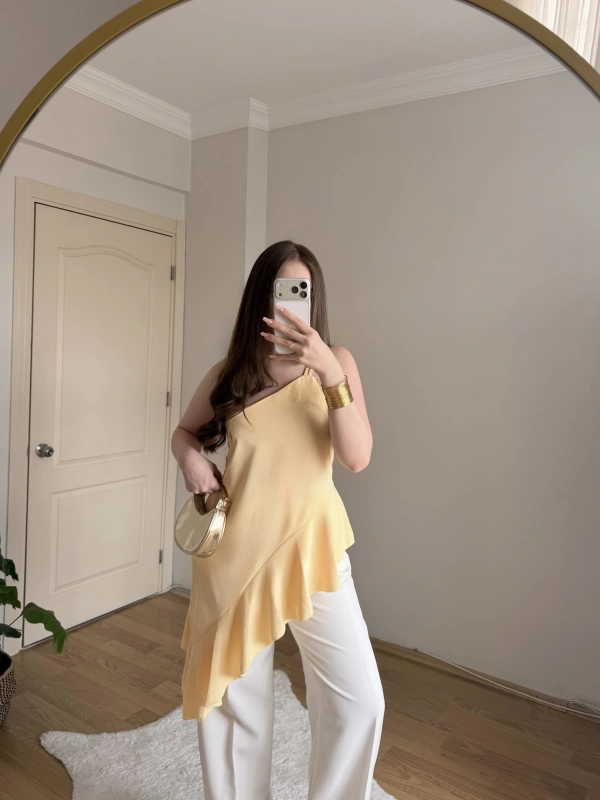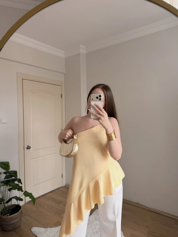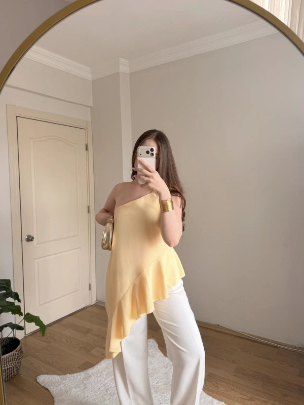 Fırfırlı Sarı Tek Askılı Bluz