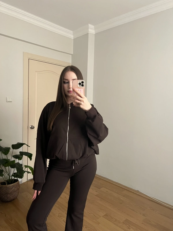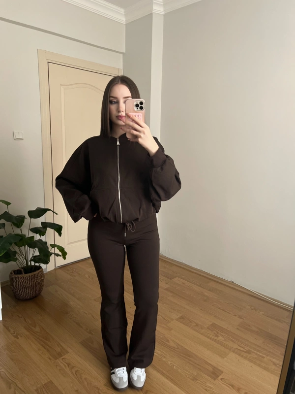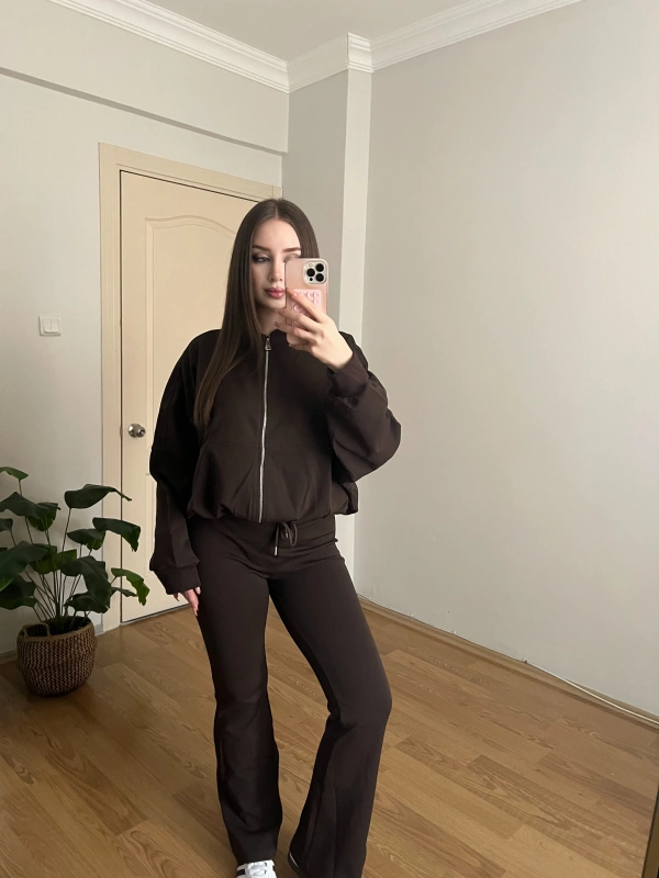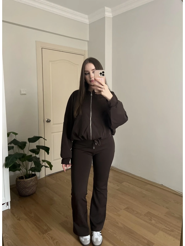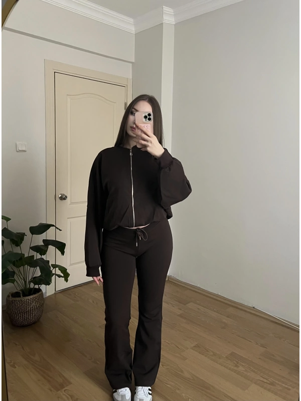 İspanyol Paçalı Bomber Ceket Kahve Takım