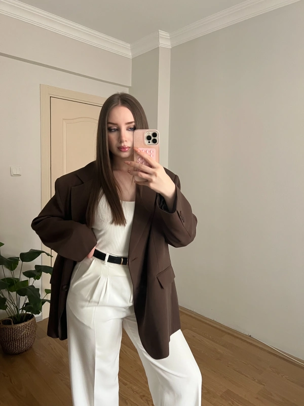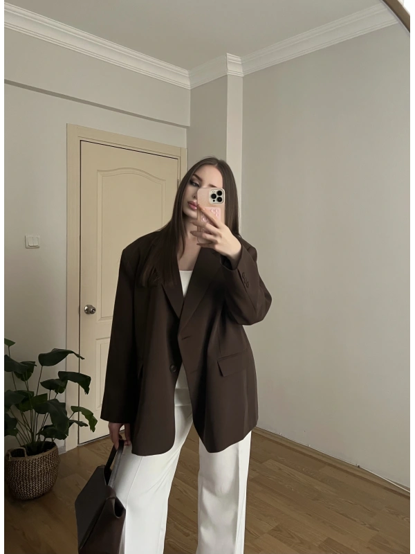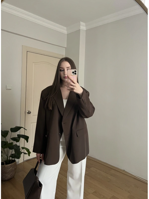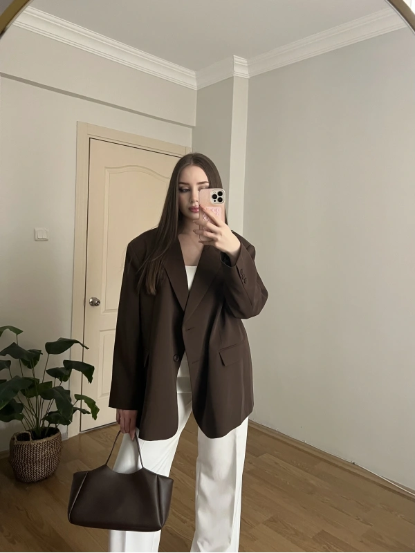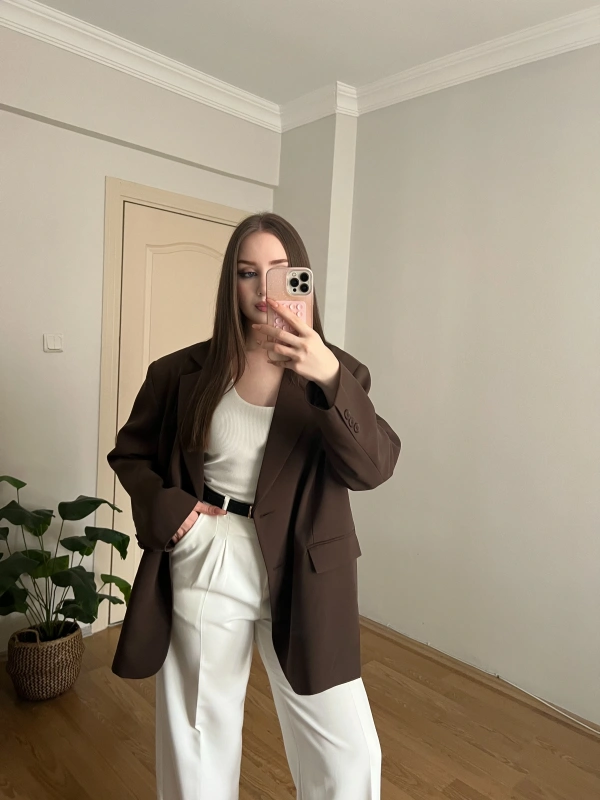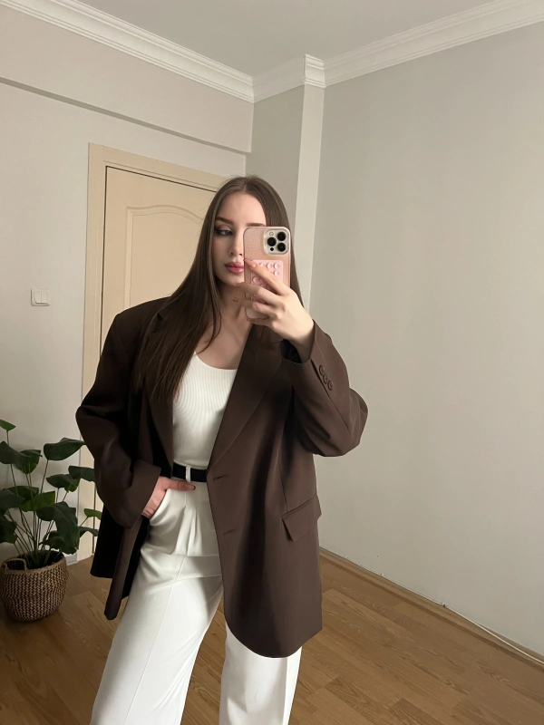 Kahverengi Oversize Blazer Ceket