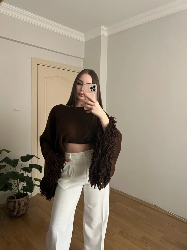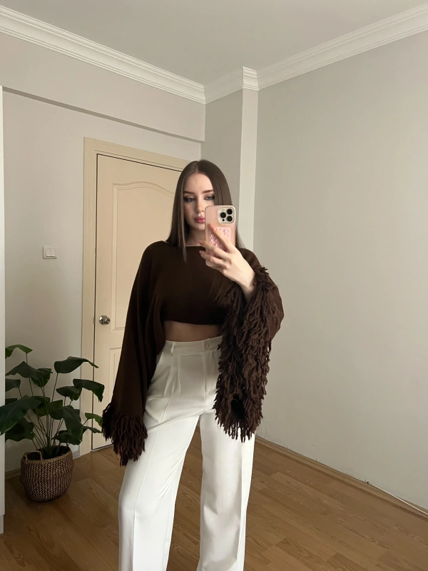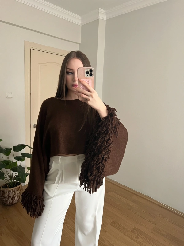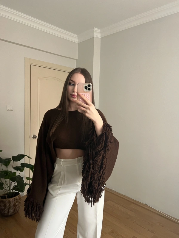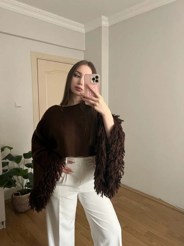 Kahverengi Pelerin Kollu Crop Kazak