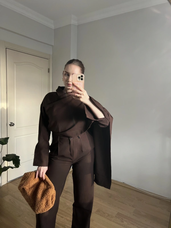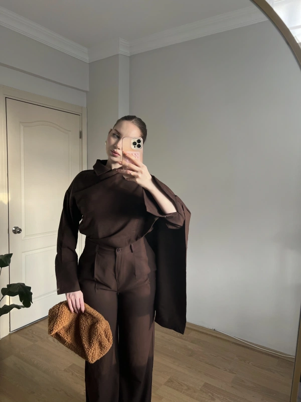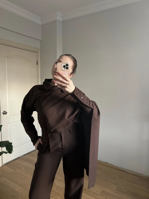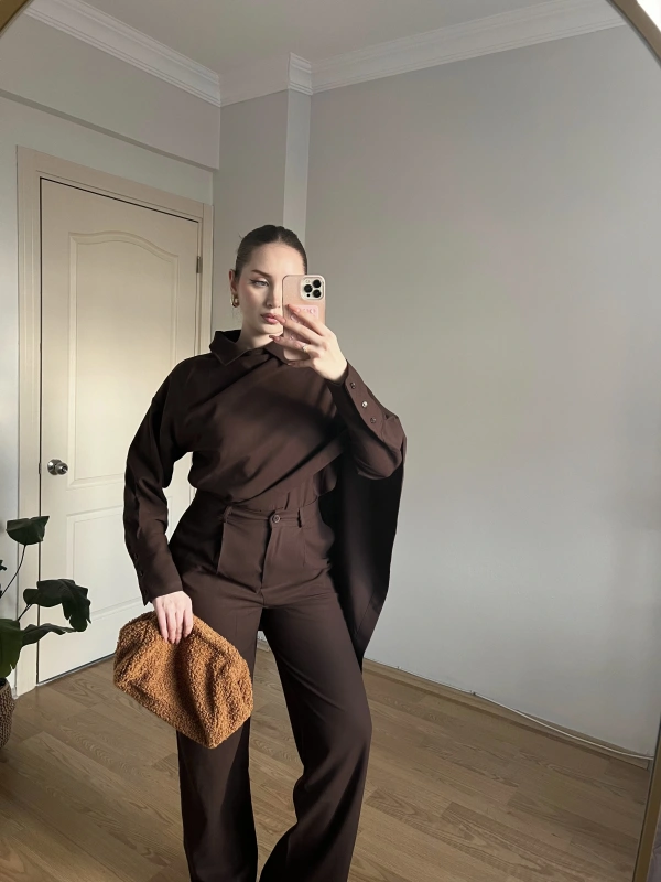 Kahverengi Şallı Gömlek Takım