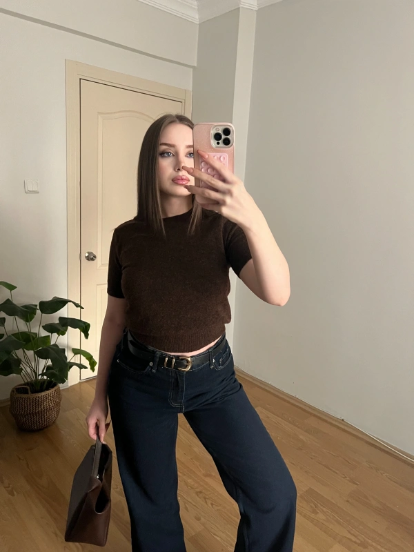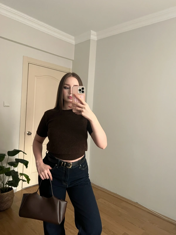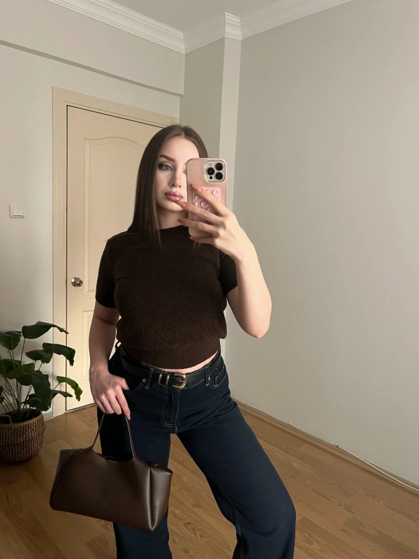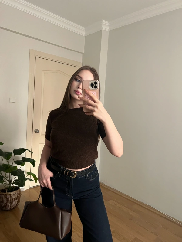 Kısa Kollu Kahve Triko Kazak