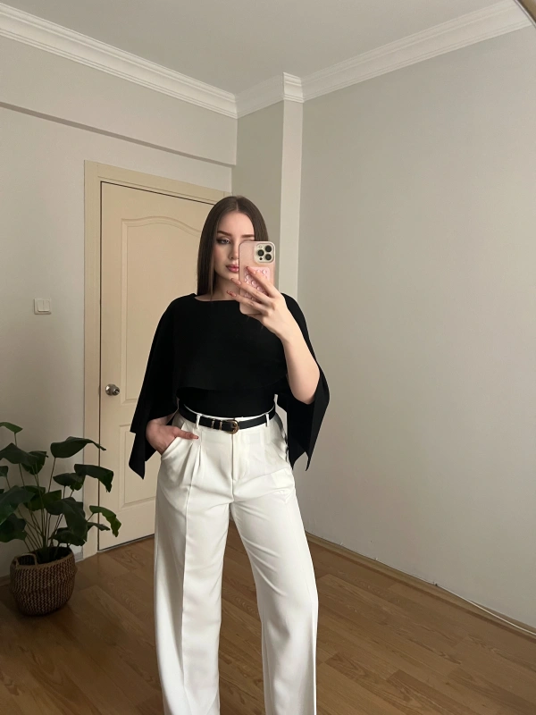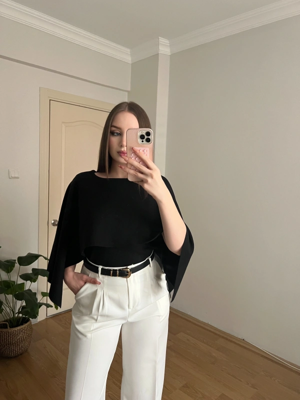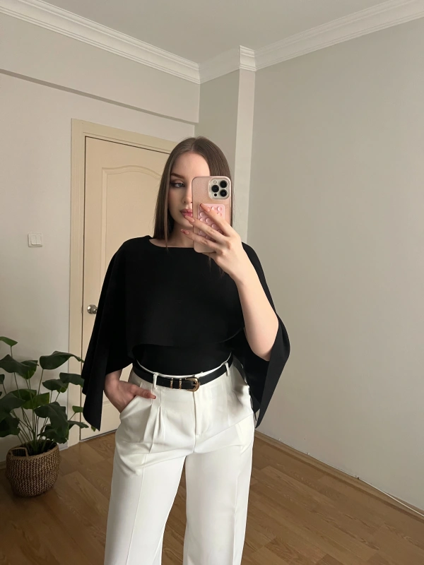 Siyah Pelerinli Triko Bluz