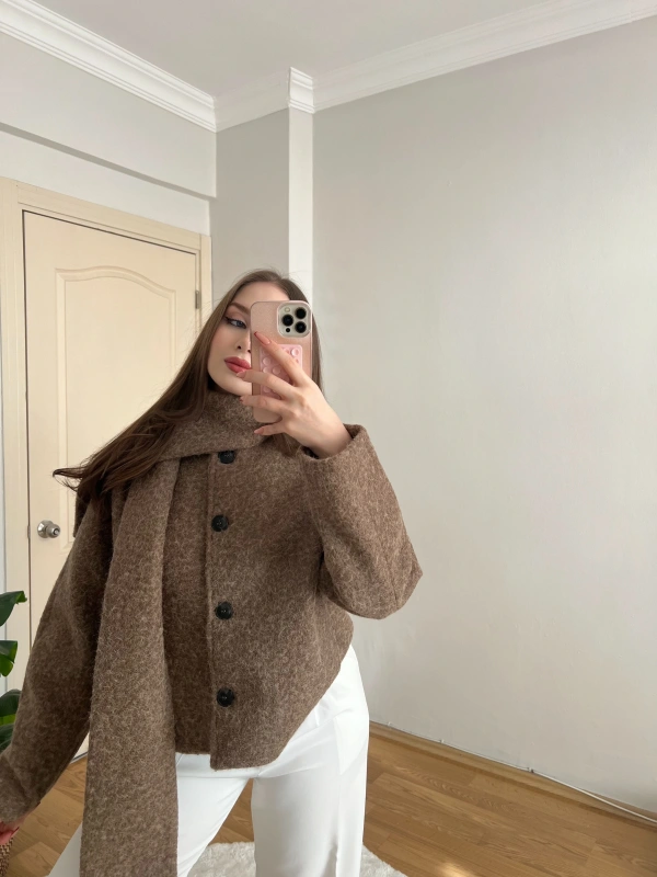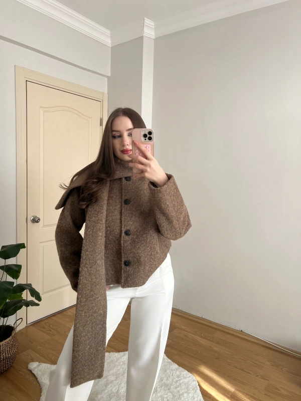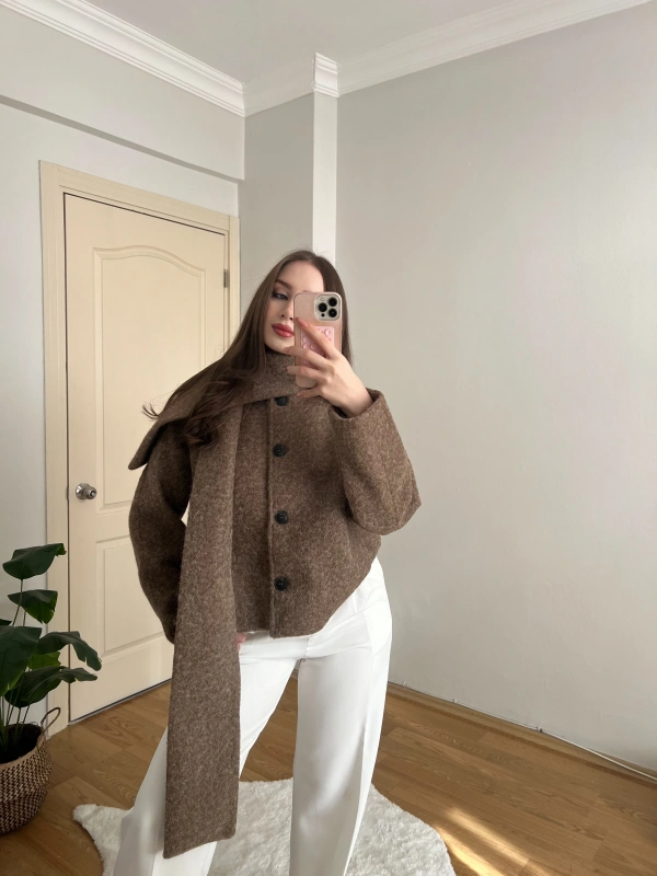 Kemer Detaylı Acı Kahve Ceket
