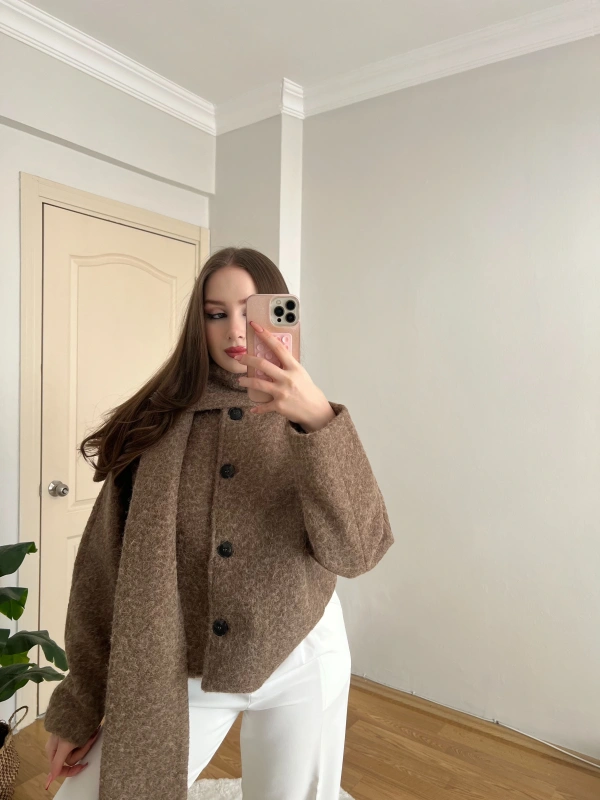 Atkılı Vizon Kaşe Ceket